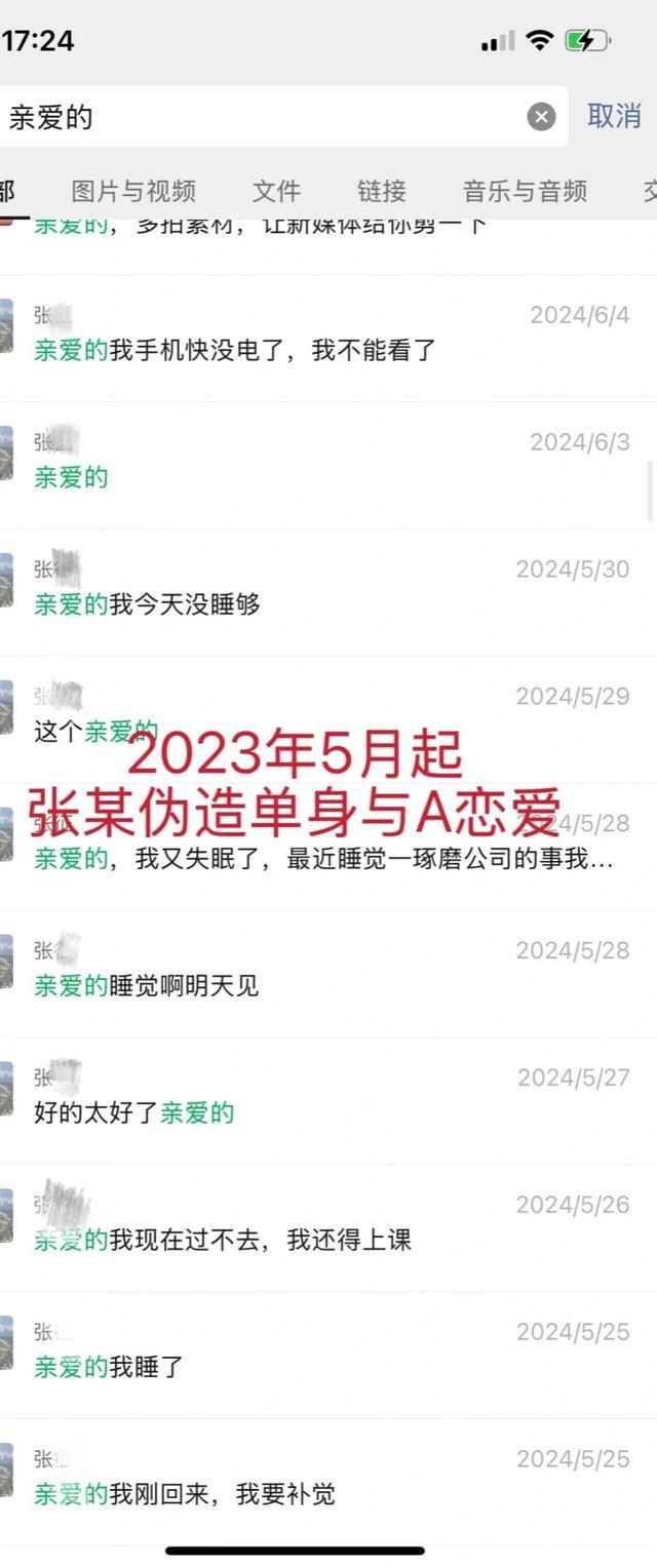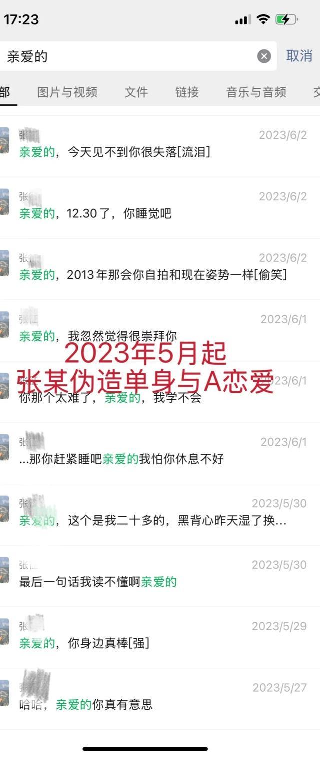 偶然机会,A看到了张某跟他所谓“前妻”其实是老婆的对话记录,才知道真心付出两年多,竟然是“被小三”!