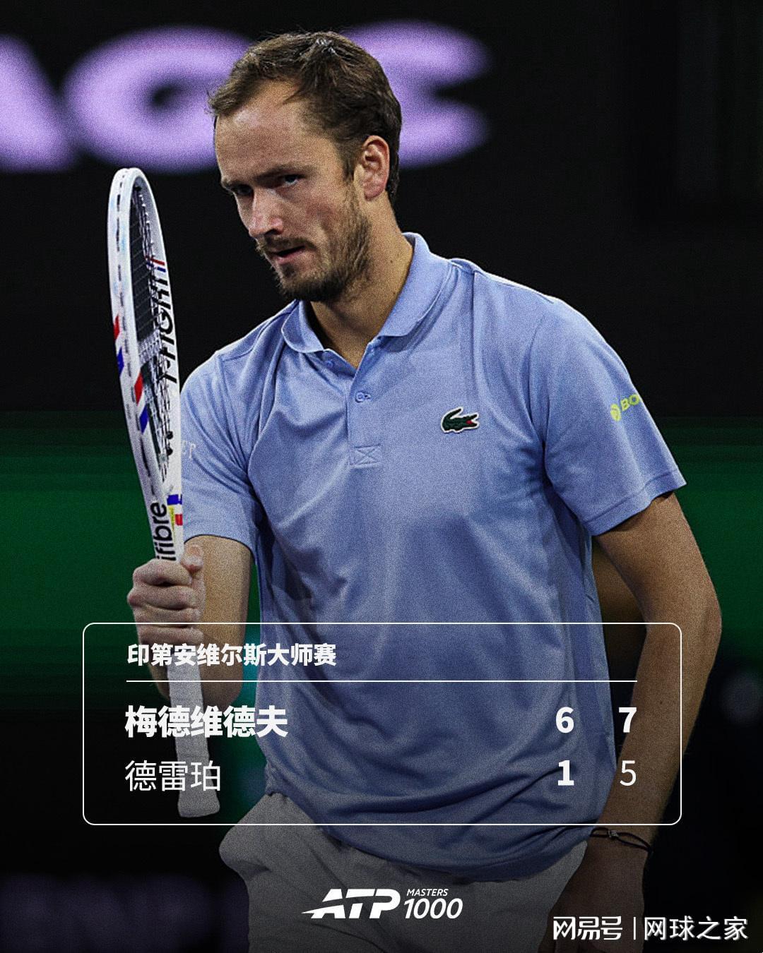 在经过局间休息后,梅德维德夫在发球胜赛局仅丢1分,在40-15之后兑现赛点,终结了德雷珀的卫冕之旅。