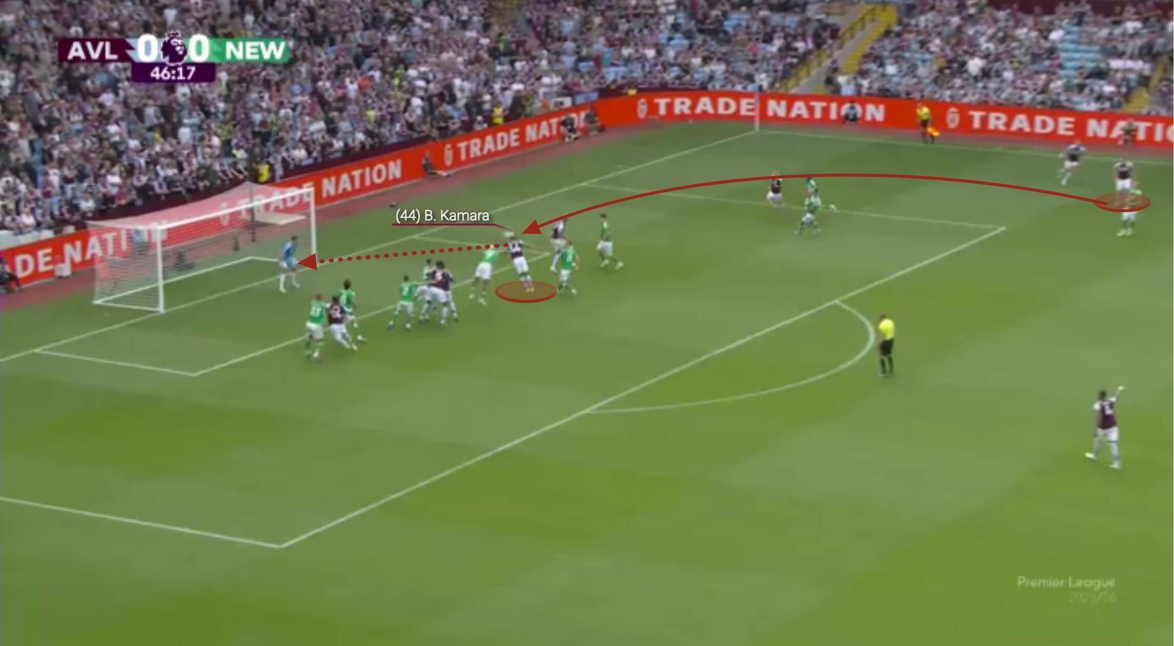 马伦有速度和直接性,但更倾向于内切跑动,而不是作为一个边路接应点。这在对阵水晶宫的下半场得到了验证,当时维拉的前场四人组几乎没有宽度可言。