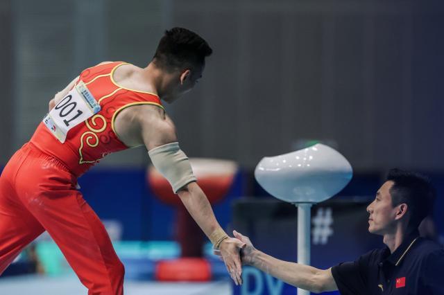 “永远把团体放在第一位。”这是肖若腾的座右铭。巴黎奥运会跟兄弟们一起去实现金牌梦,也是他坚持这三年最大的动力。时间转到巴黎贝尔西体育馆,中国男团前五轮都领先对手,肖若腾在跳马项目上还贡献了全队最高分。然而,在最后一个单杠项目上,出现意外,替补上场的苏炜德两次掉杠。