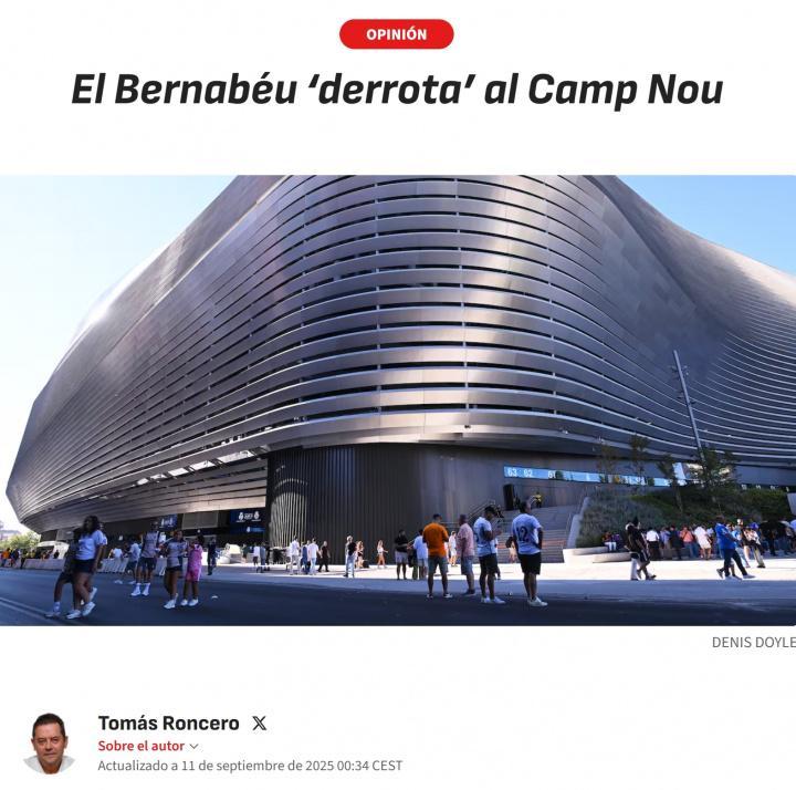 《阿斯报》副主编、著名皇马球迷龙赛罗借此机会撰文讽刺了巴萨的主场建设,文章内容如下:
